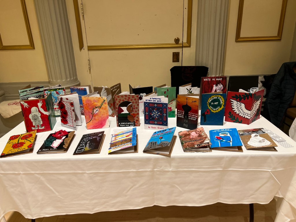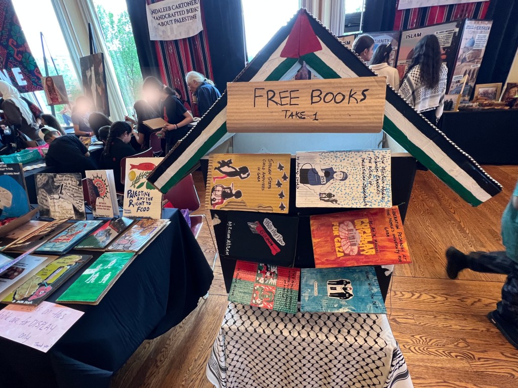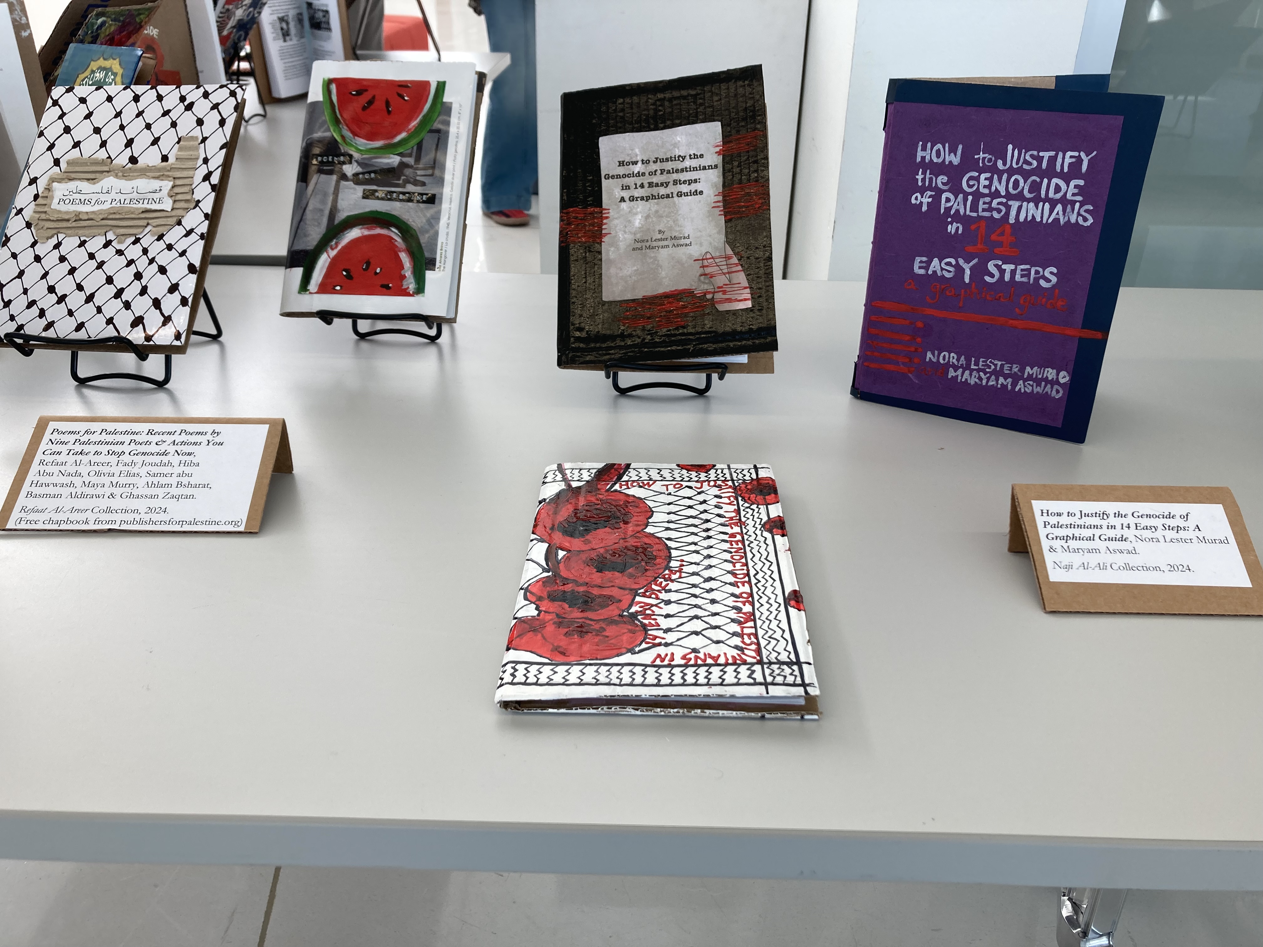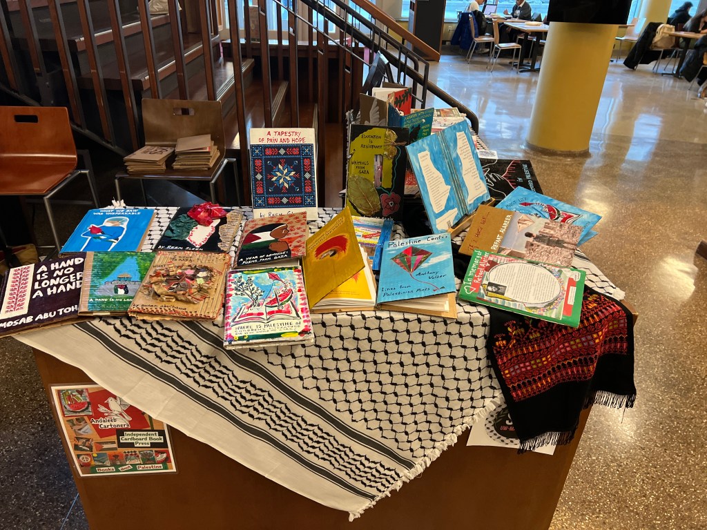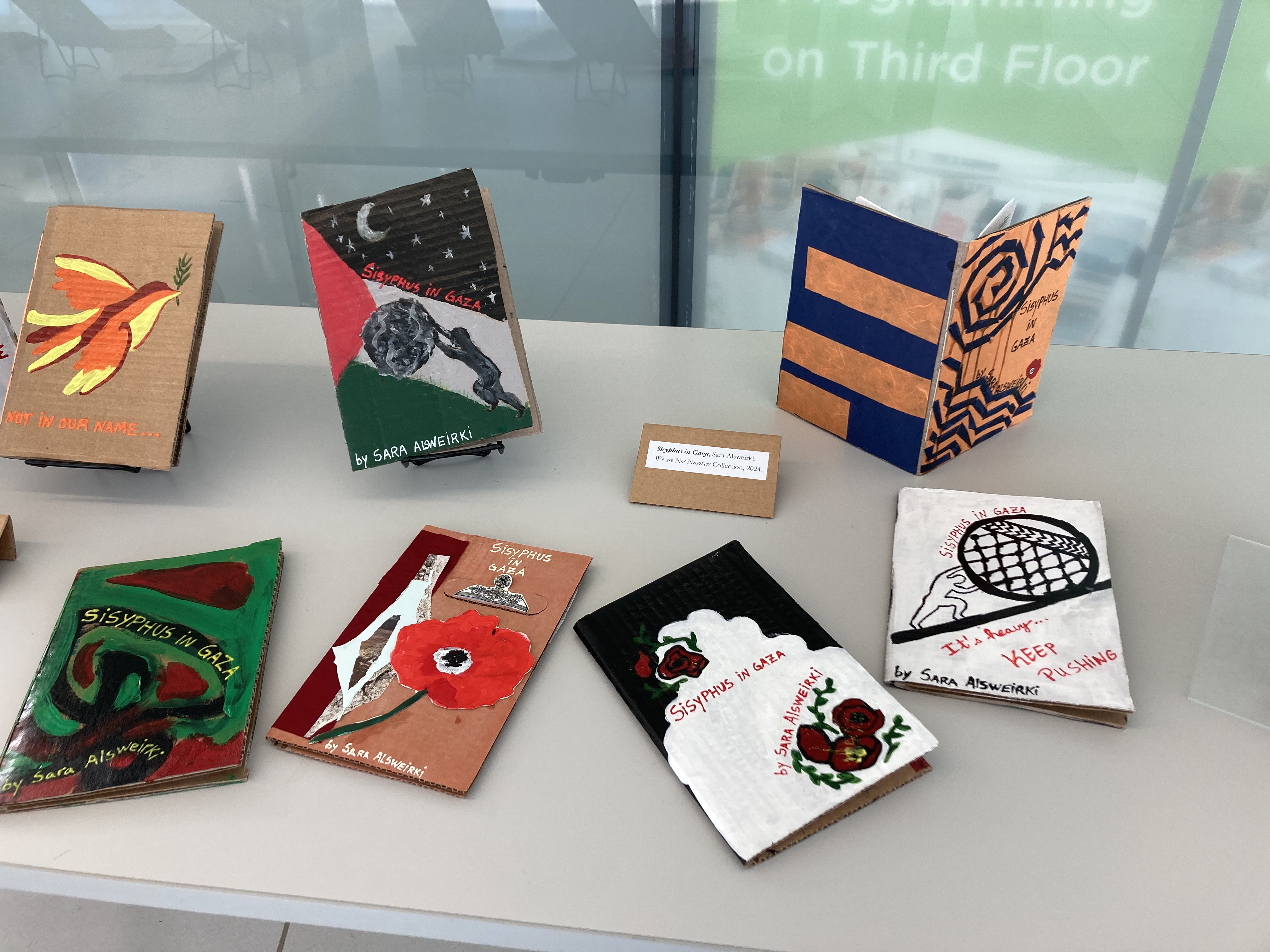 We have displayed Andaleeb Cartonera’s handcrafted books in different venues to showcase our titles centered on Palestine and the authors collaborating with us. If you would like us to bring a display to your institution, library, bookstore, school or solidarity event, feel free to contact us.