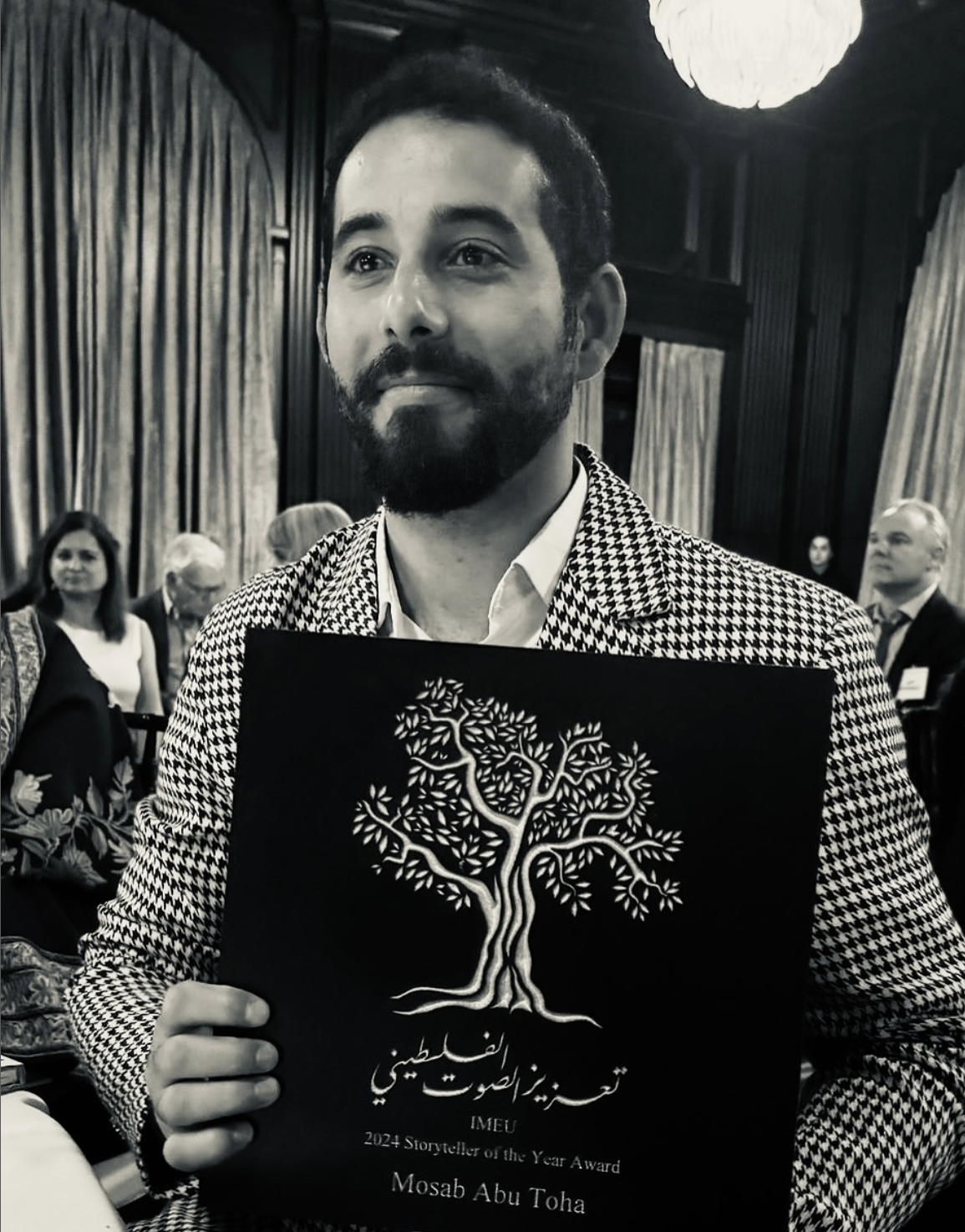 In 2022, Mosab Abu Toha’s collection of poetry Things You May Find Hidden in My Ear won a Palestine Book Award and an American Book Award. His most recent book, Forest of Noise, was released in October 2024, and a month later he received the IMEU (Institute for Middle East Understanding) 2024 Storyteller of the Year Award.