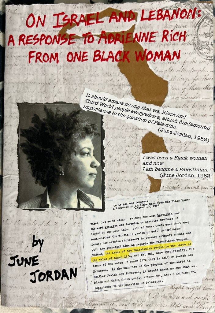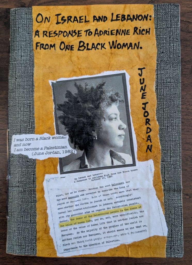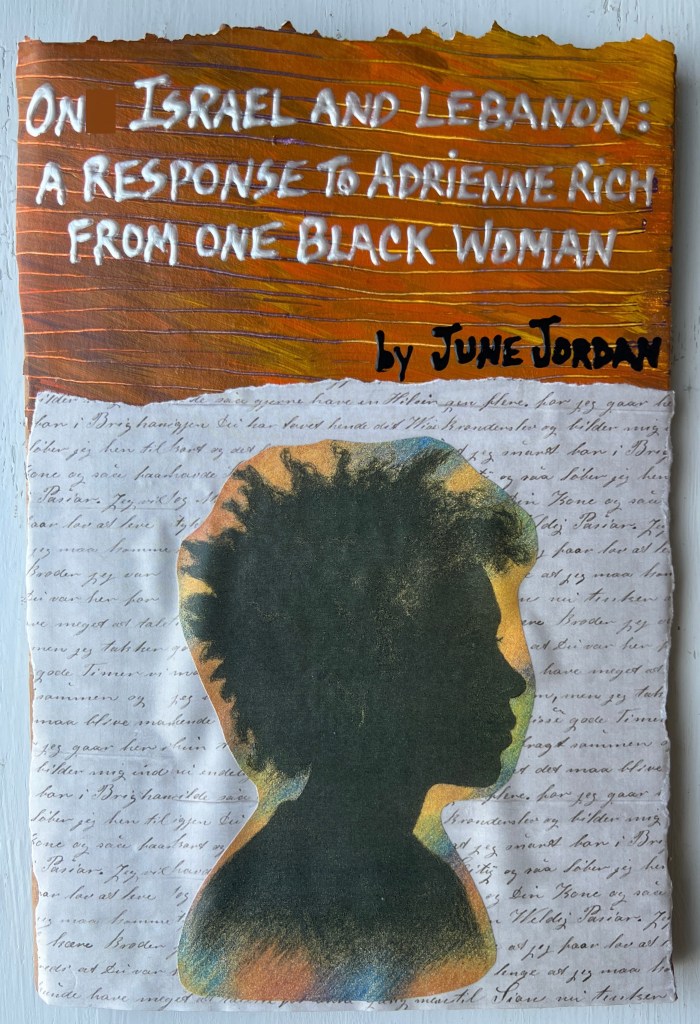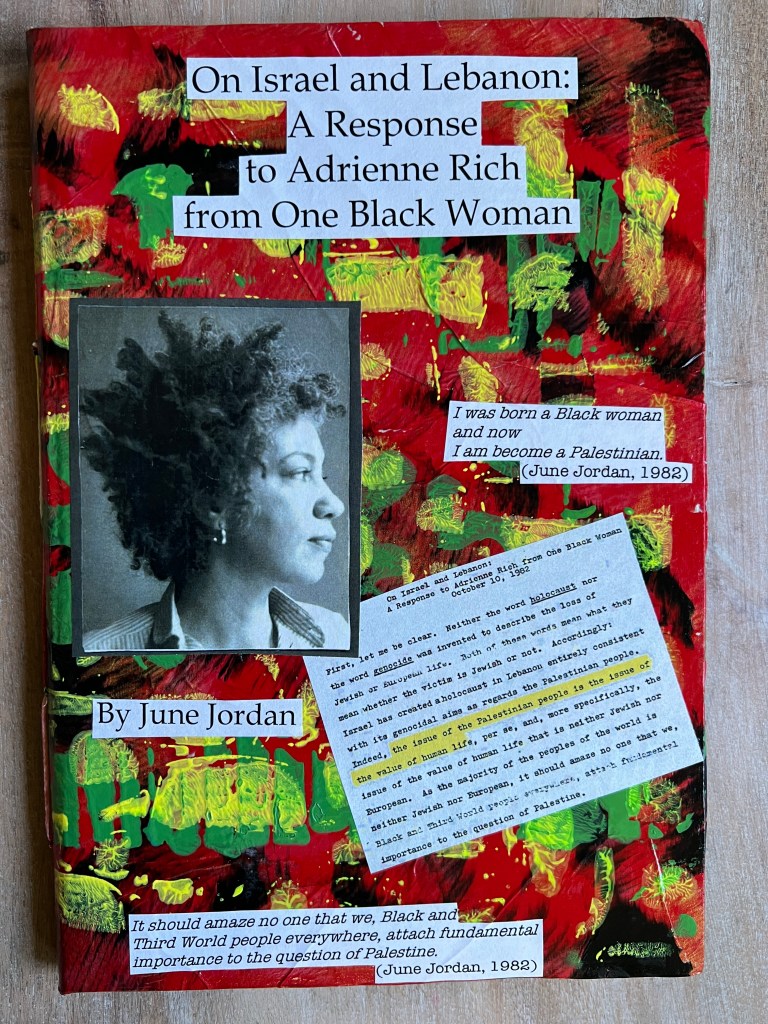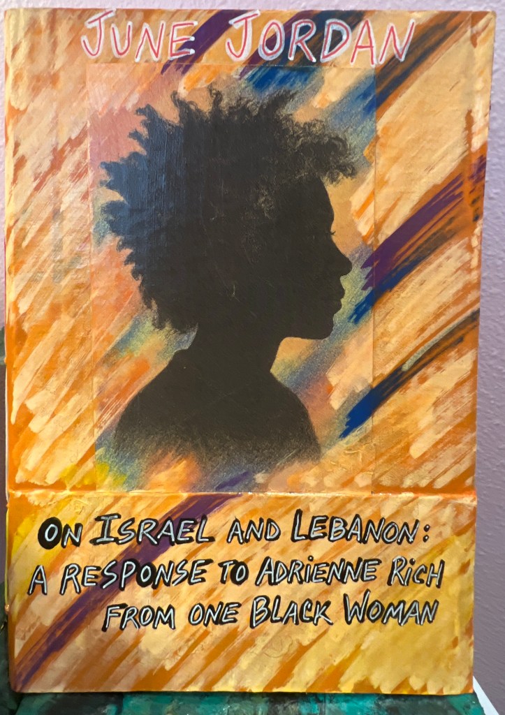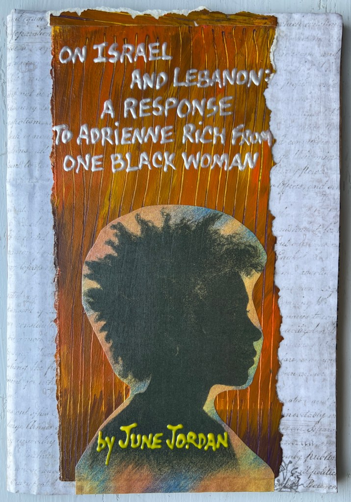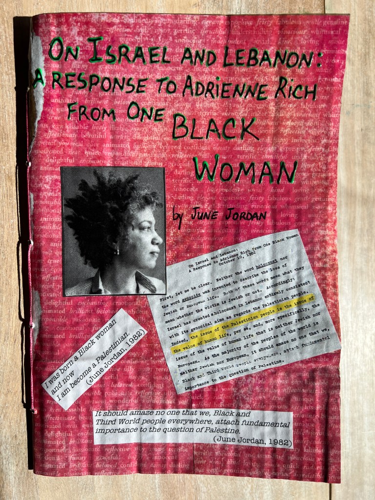 On Israel and Lebanon: A Response to Adrienne Rich from One Black Woman, by June Jordan. (Andaleeb Cartonera, 2025)