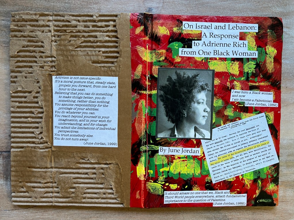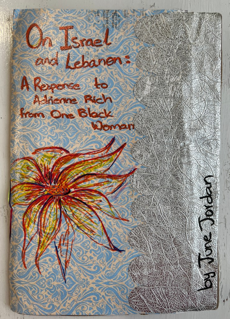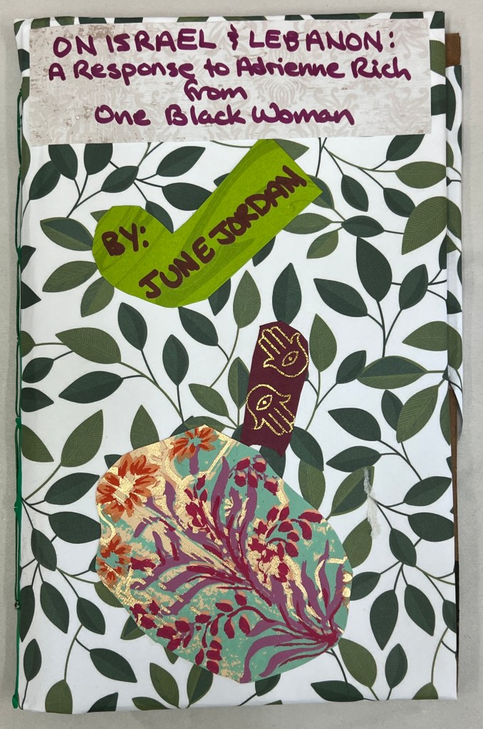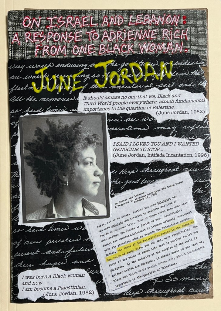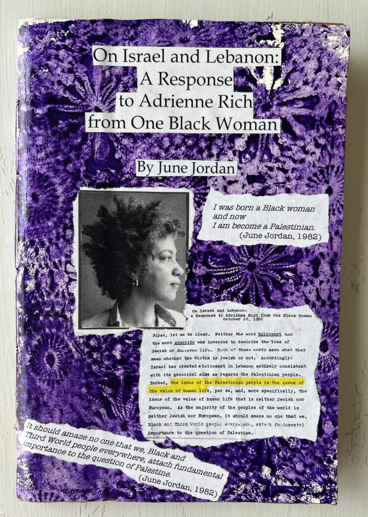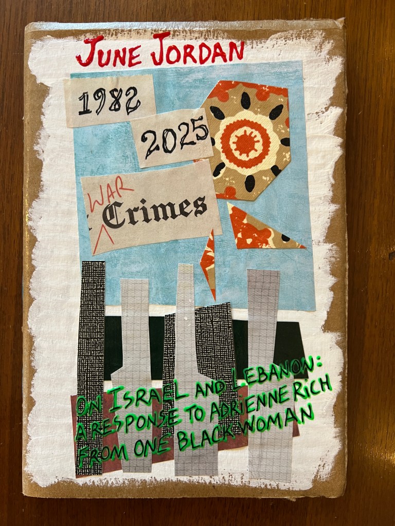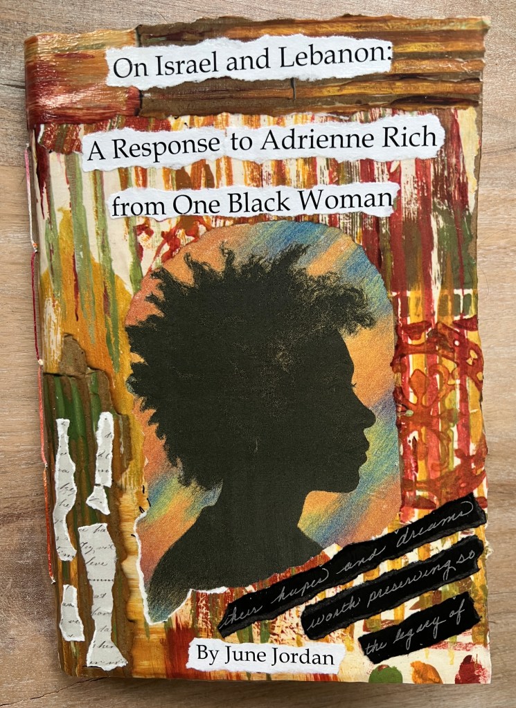 On Israel and Lebanon: A Response to Adrienne Rich from One Black Woman, by June Jordan. (Andaleeb Cartonera, 2025)