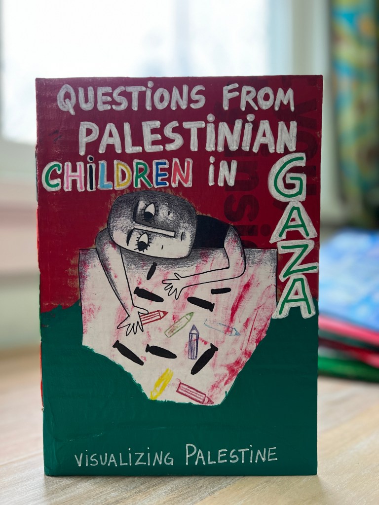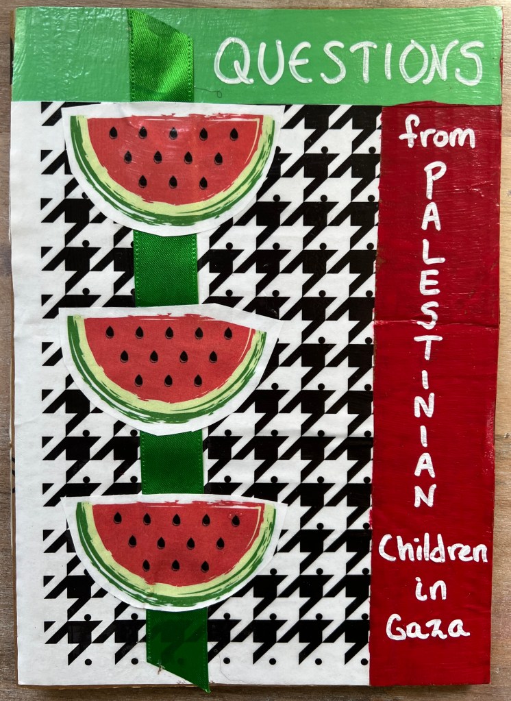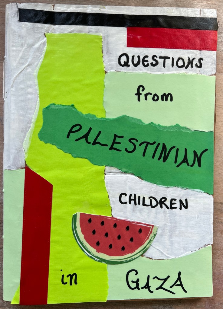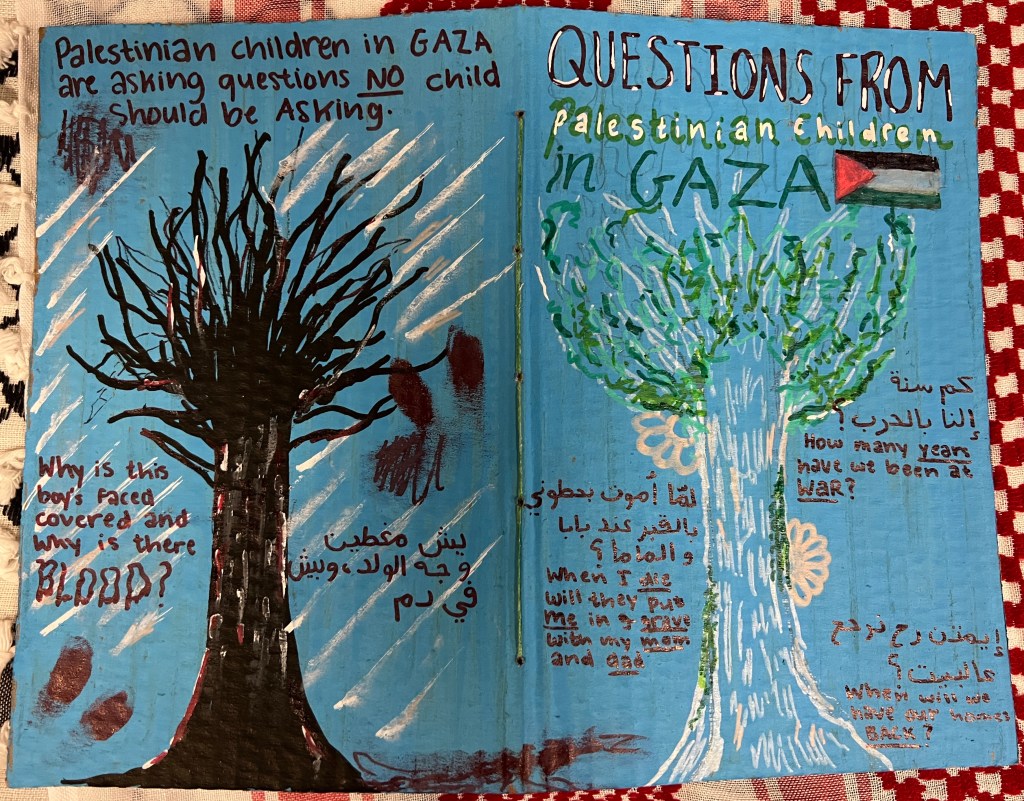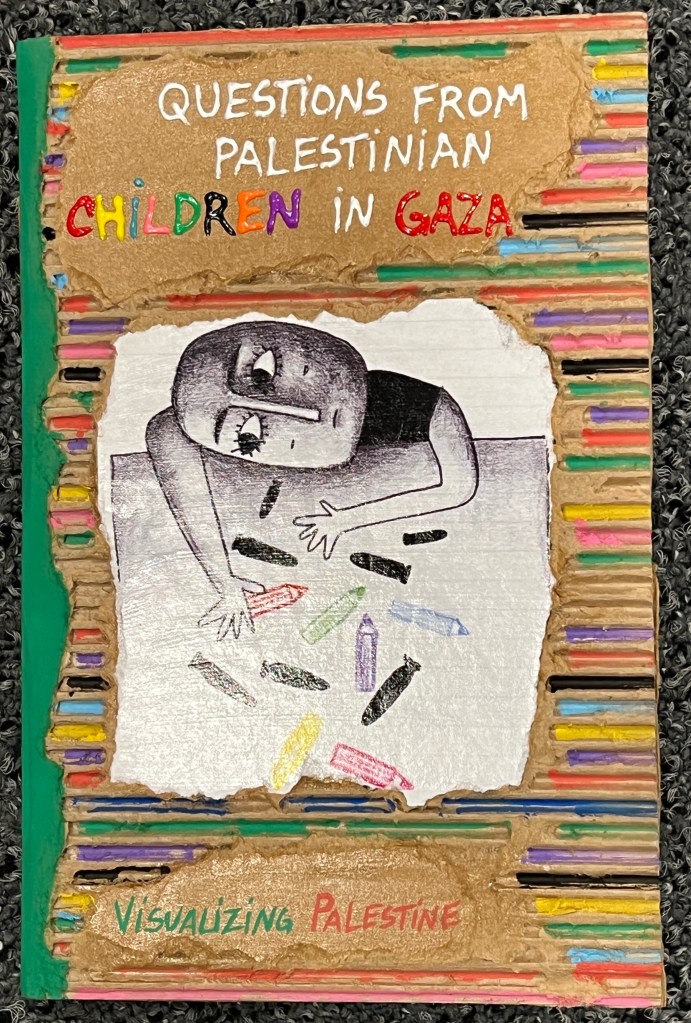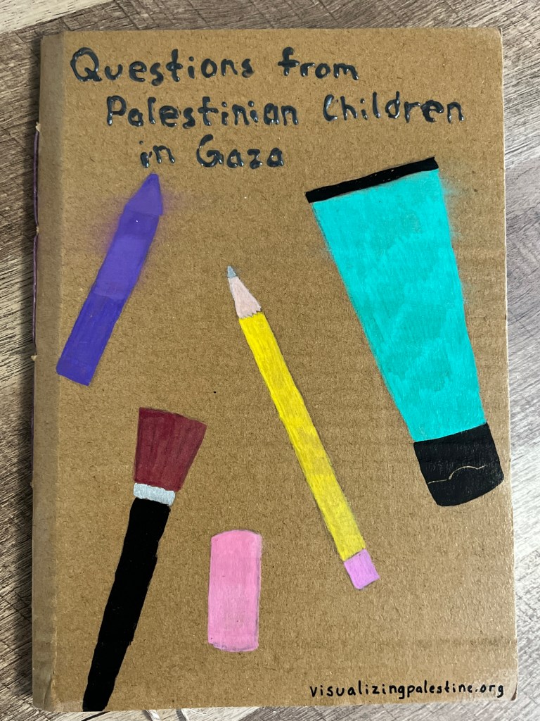 Questions from Palestinian Children in Gaza, Visualizing Palestine, Palestine Trauma Center-UK & Palestine-Global Mental Health Network. (Andaleeb Cartonera, 2025)
