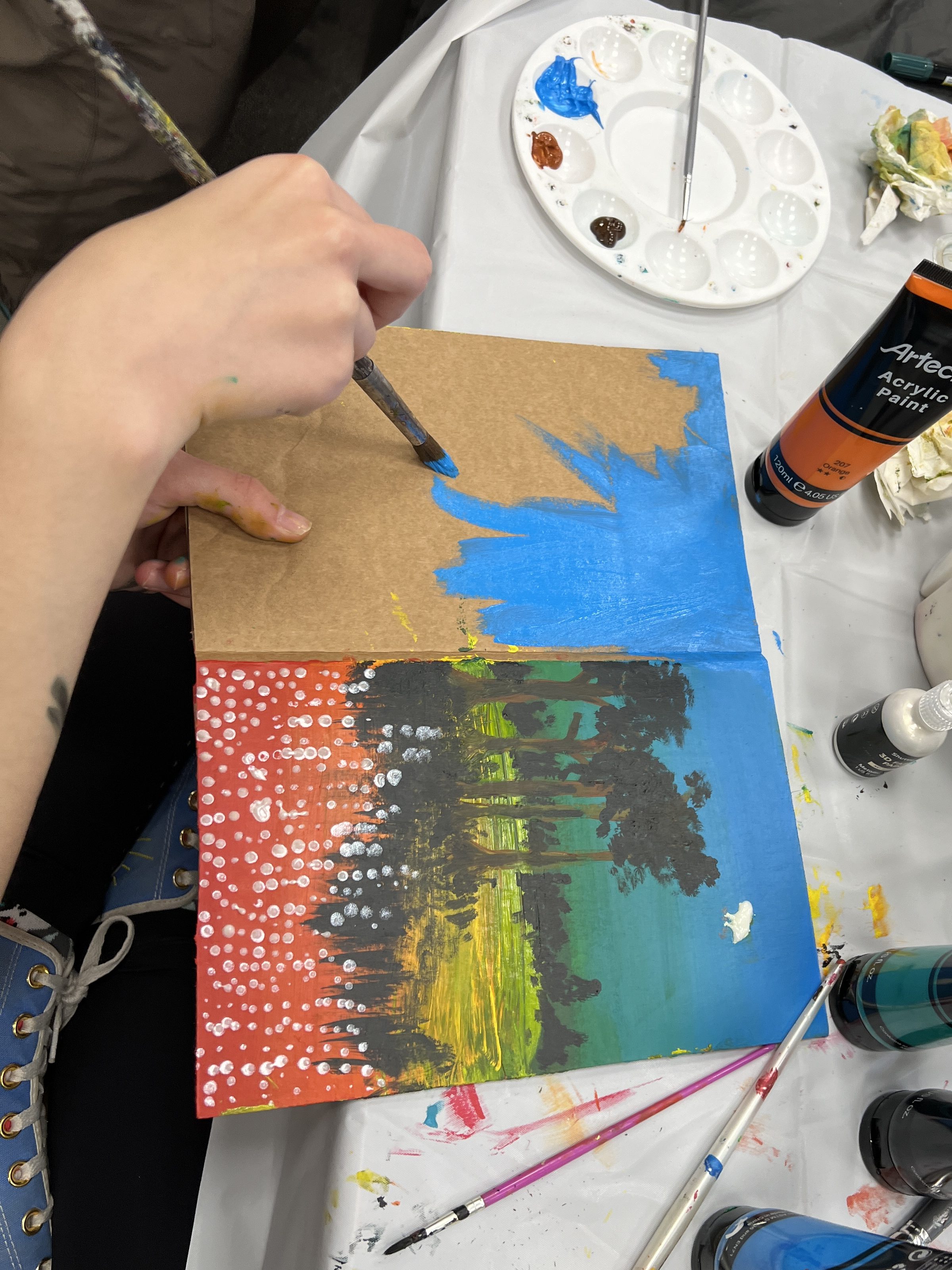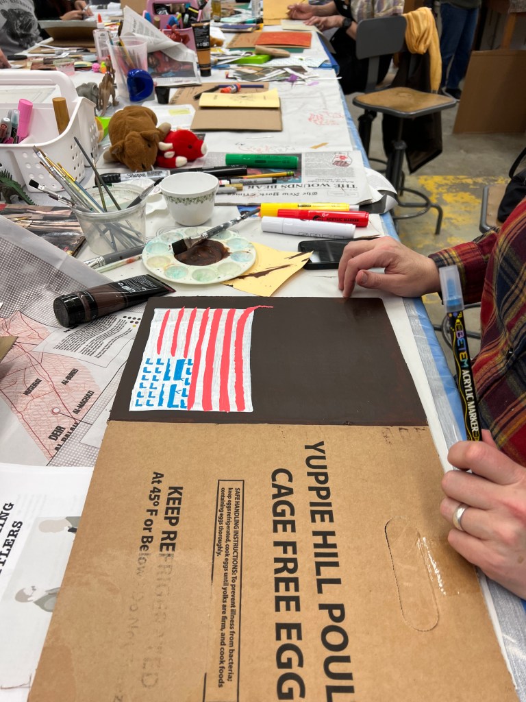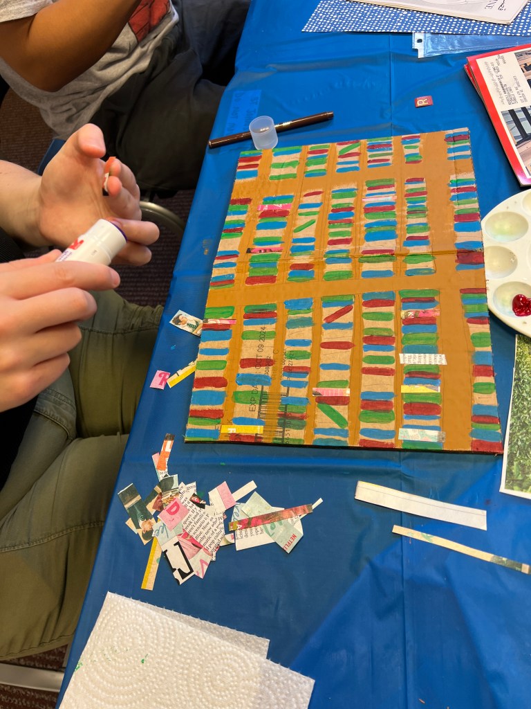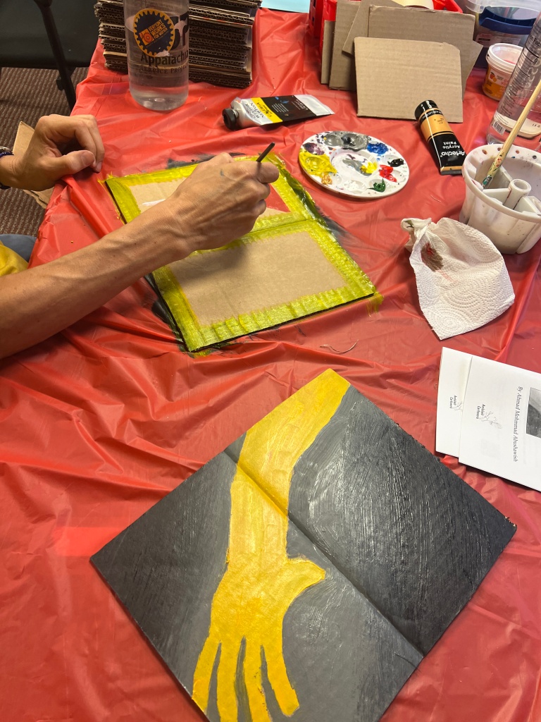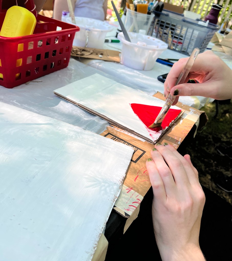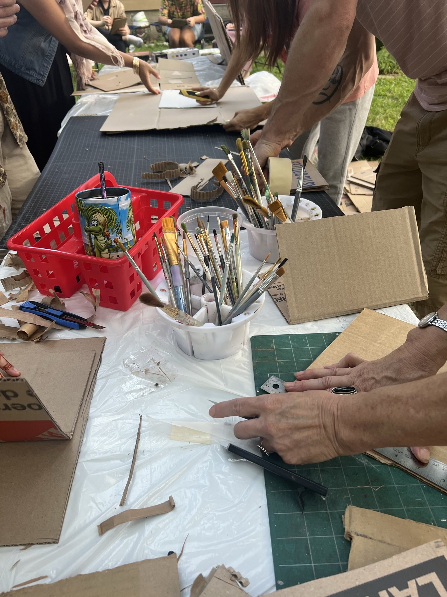Come to our free workshops and help us paint, collage, or cut cardboard.