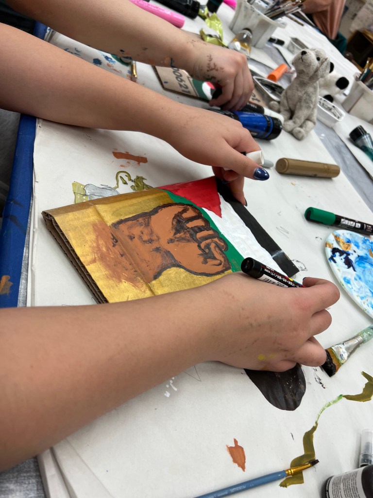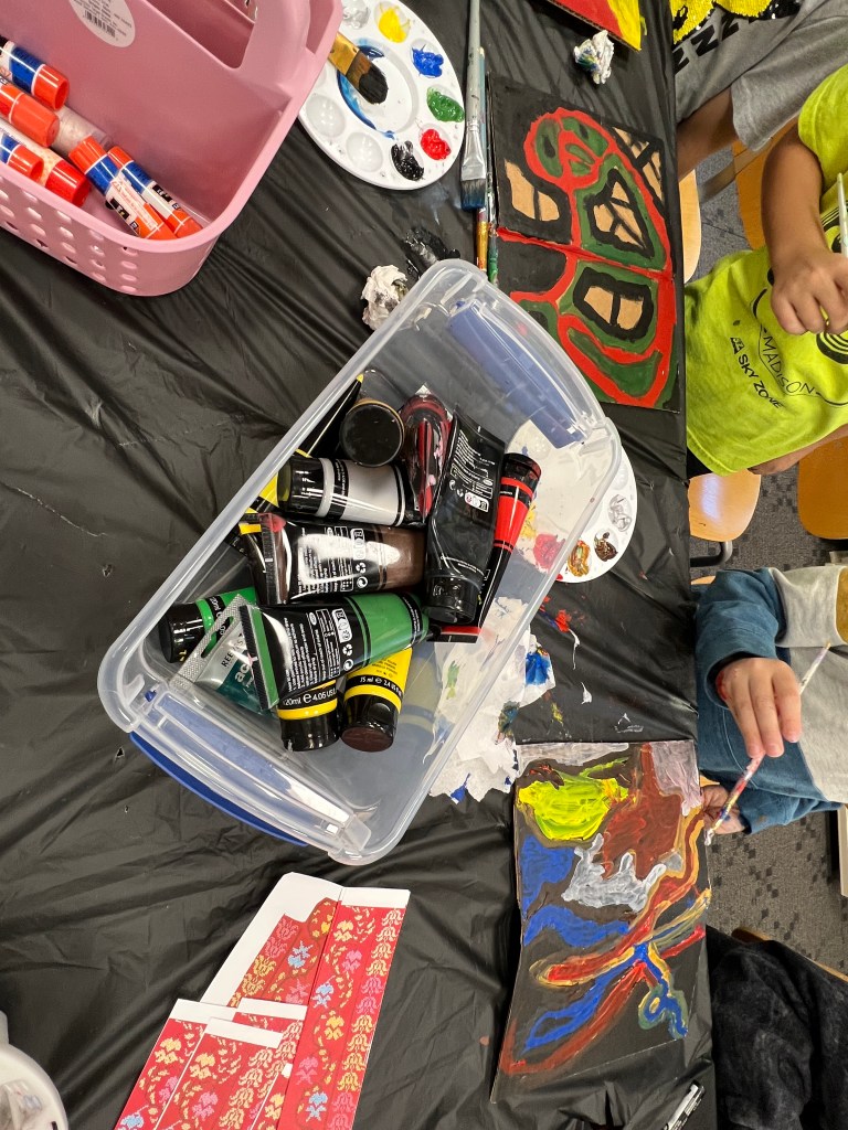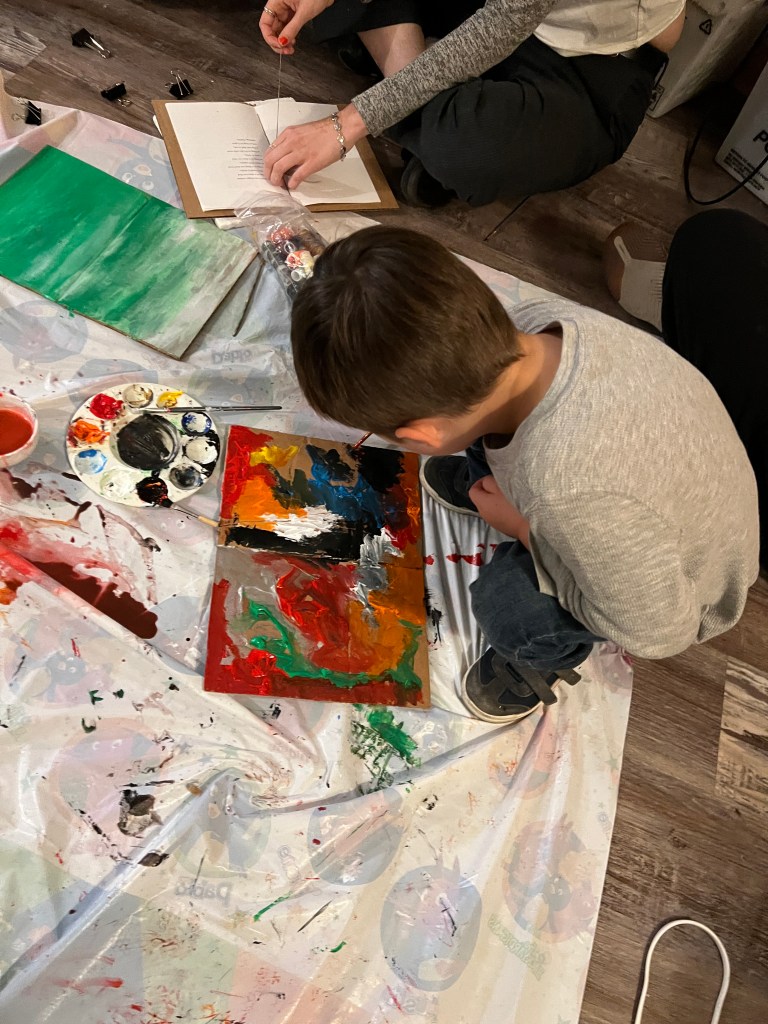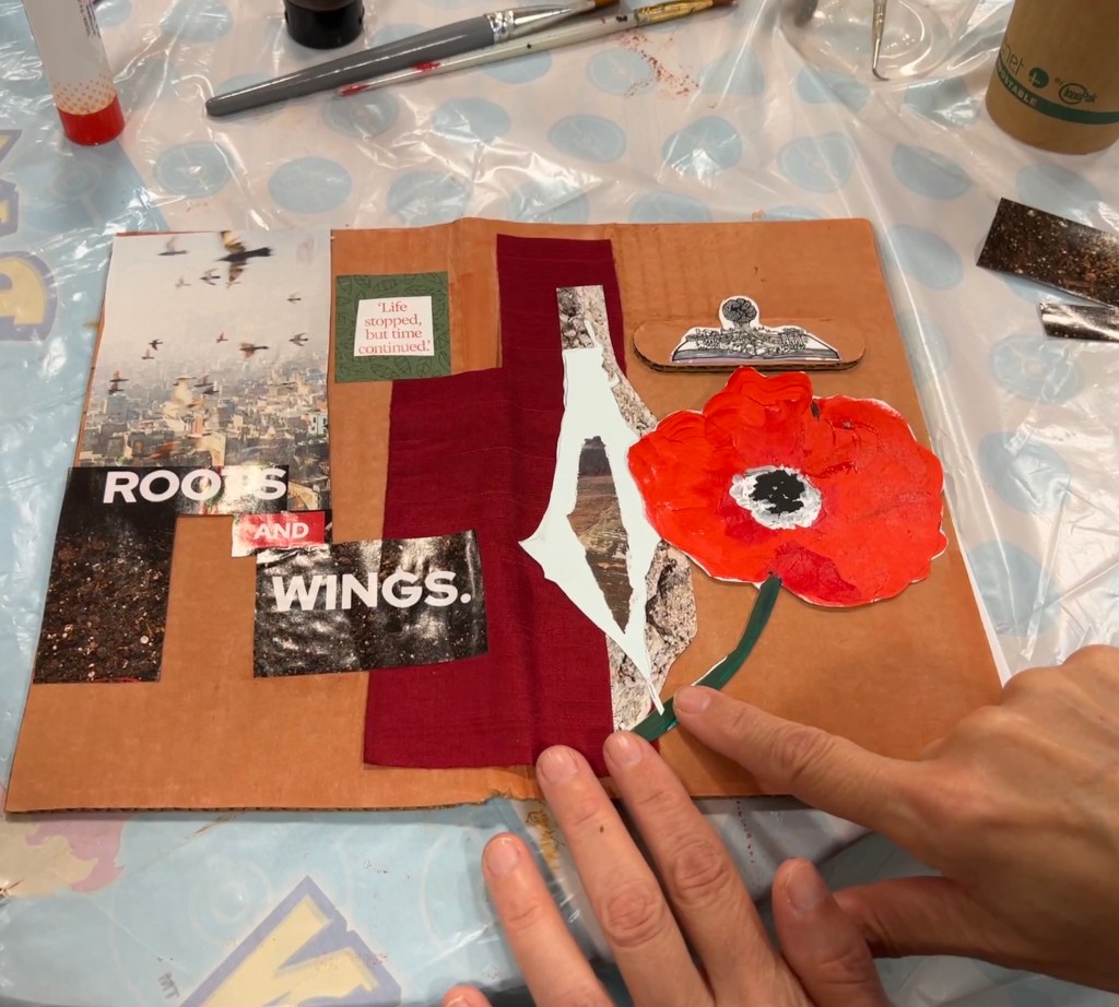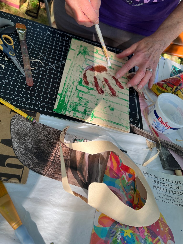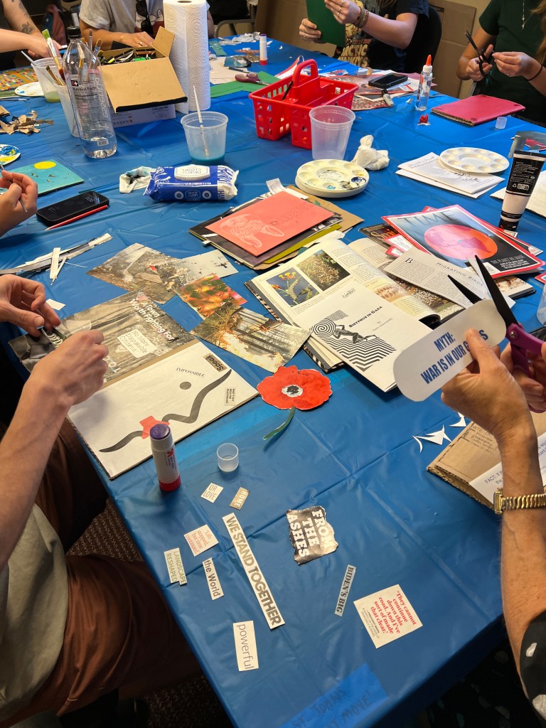 Come to our free workshops and help us paint, collage, or cut cardboard.