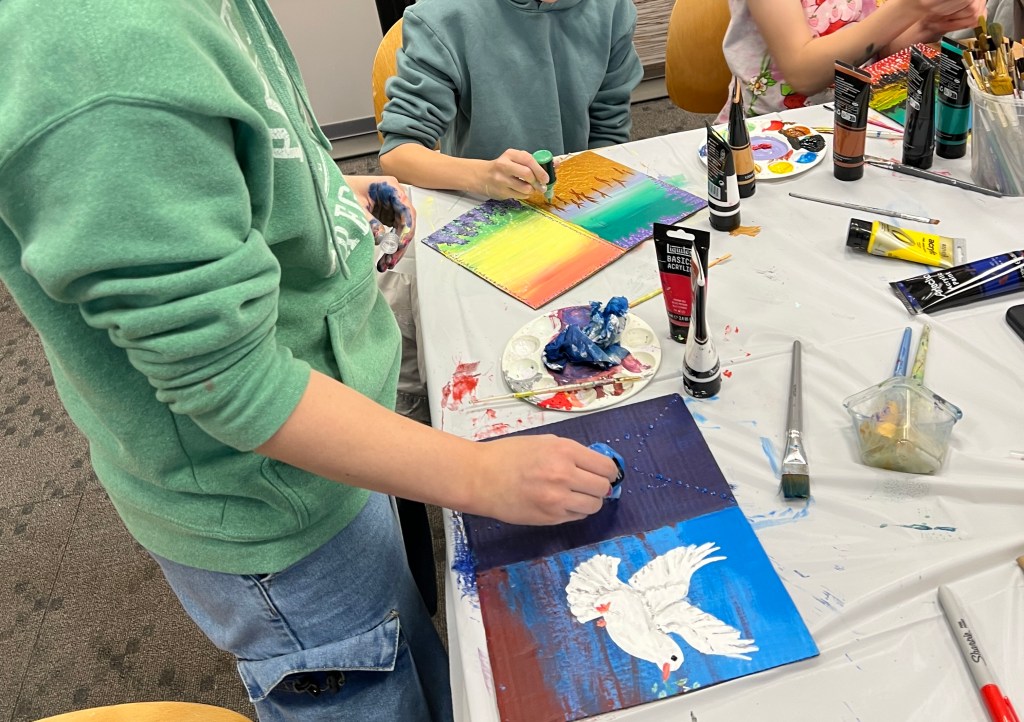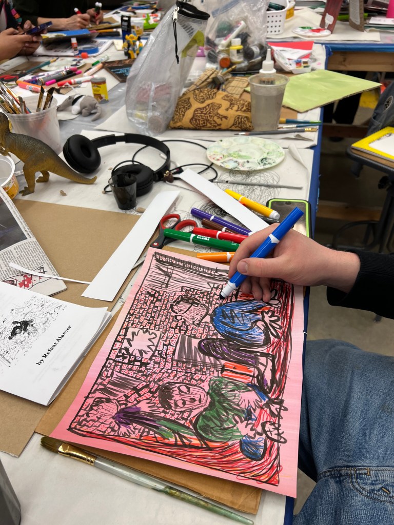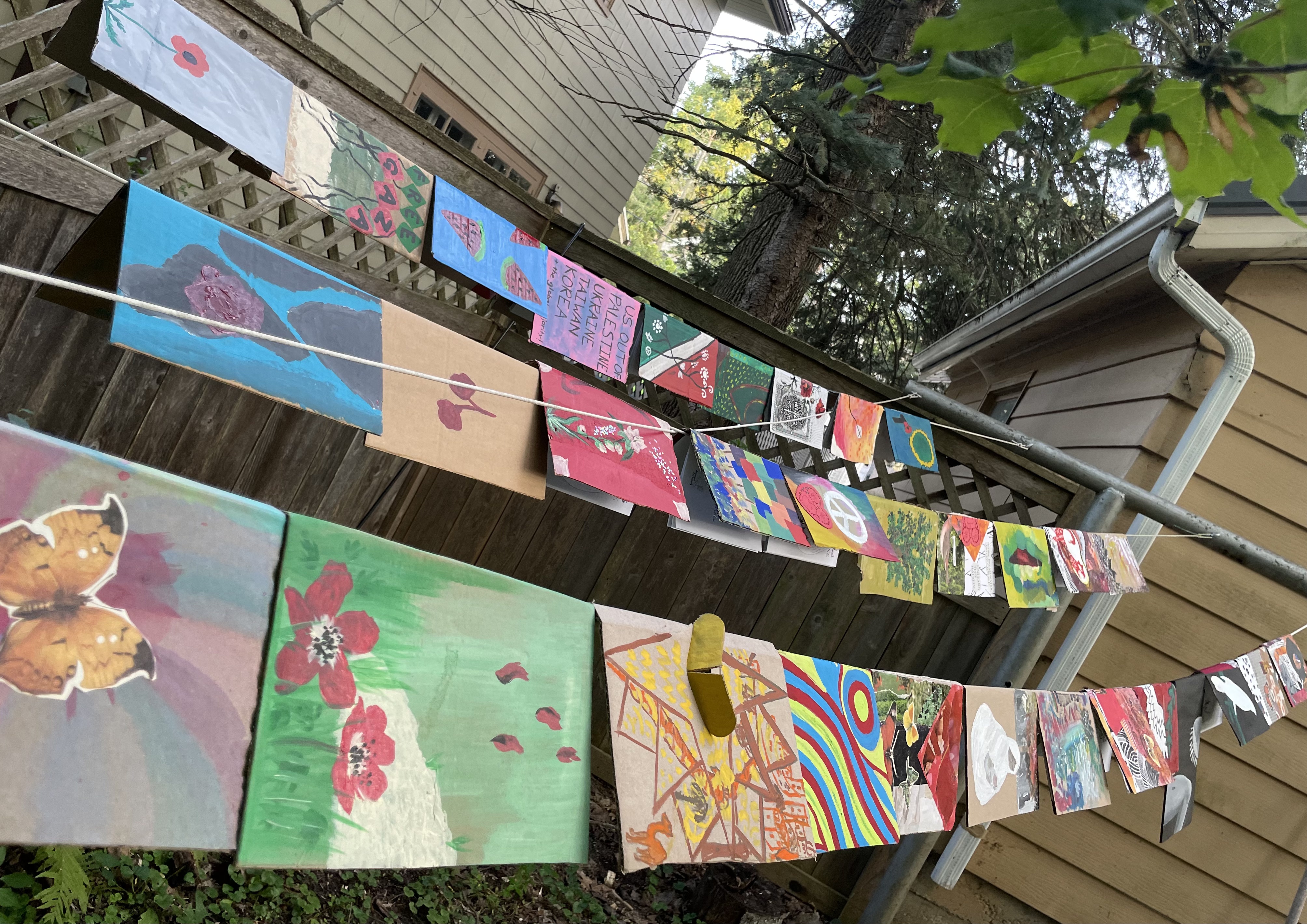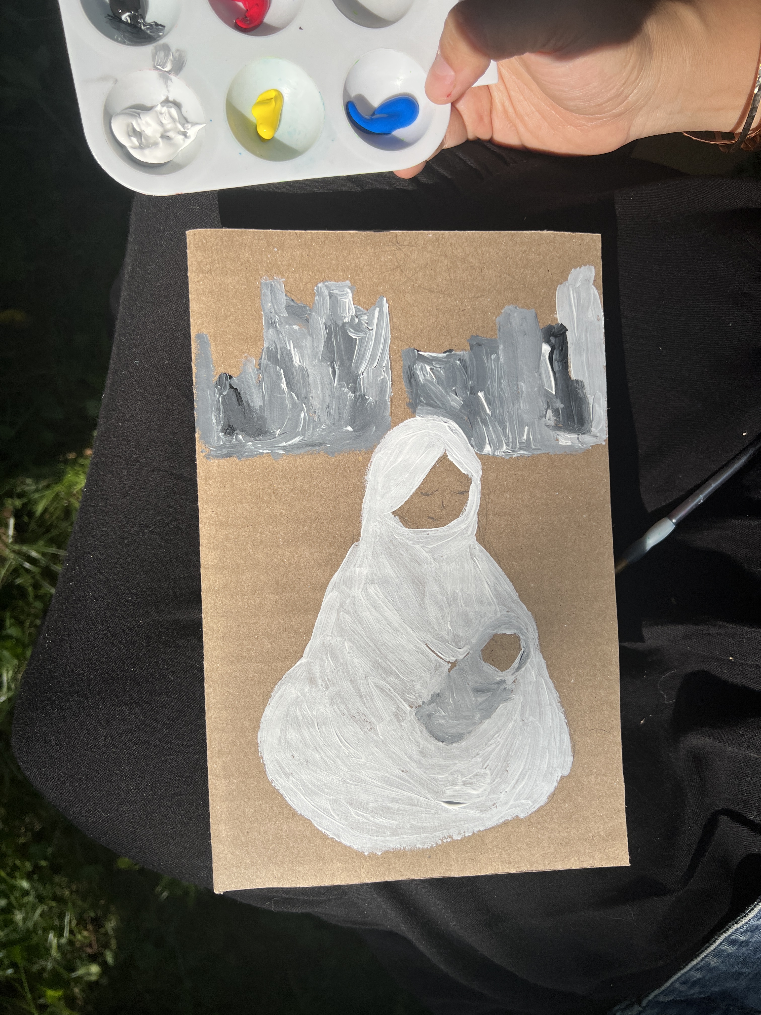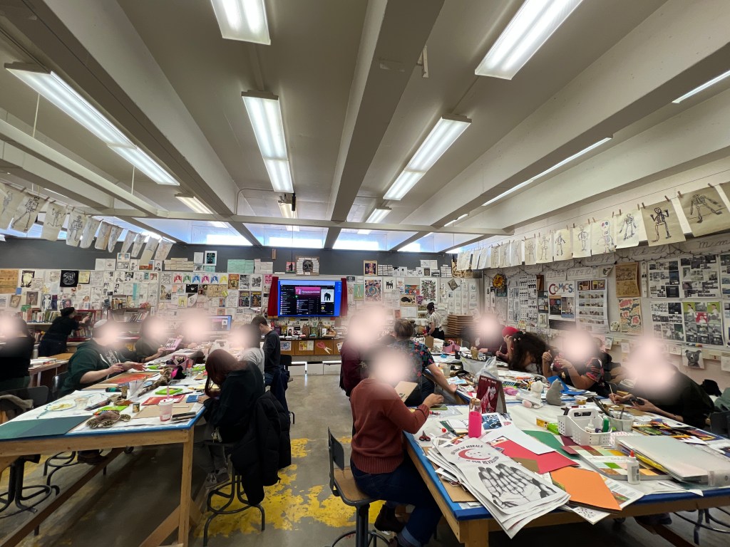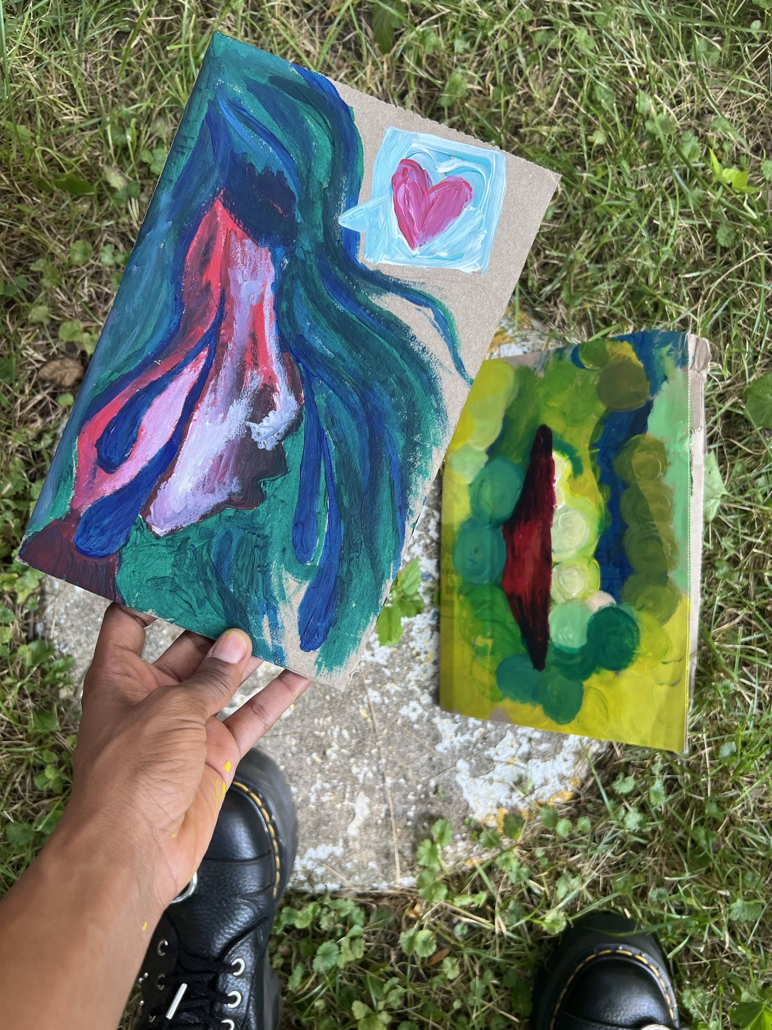 Come to our free workshops and help us paint, collage, or cut cardboard.