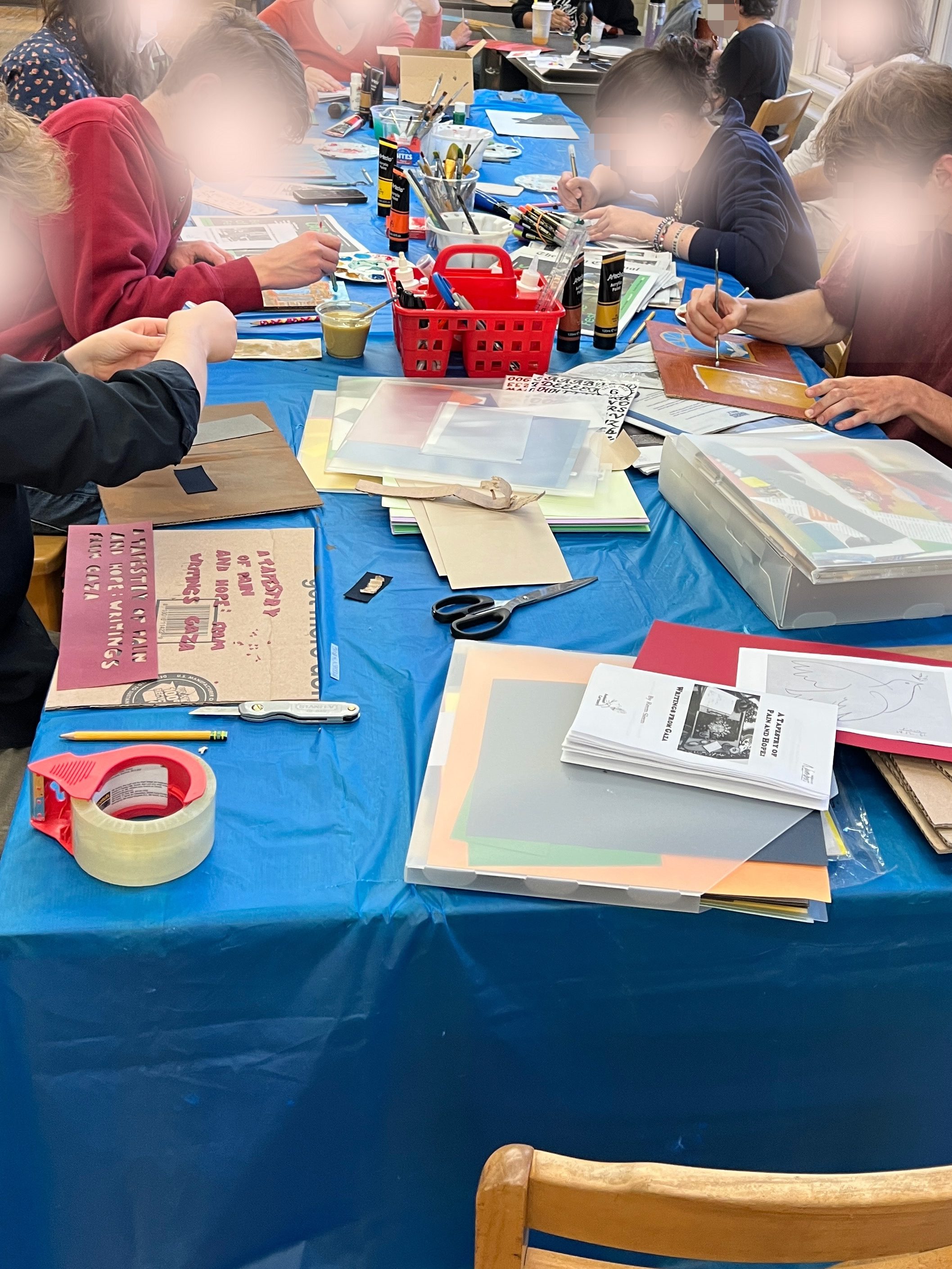 We provide everything you need to make a cartonero book, including cardboard for the covers, photocopies of the titles from our catalogue, paint, collage and binding materials. Everything is free!